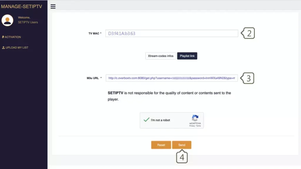 Visit: https://cms.manage-setiptv.com/set.app and select the Playlist link method option.